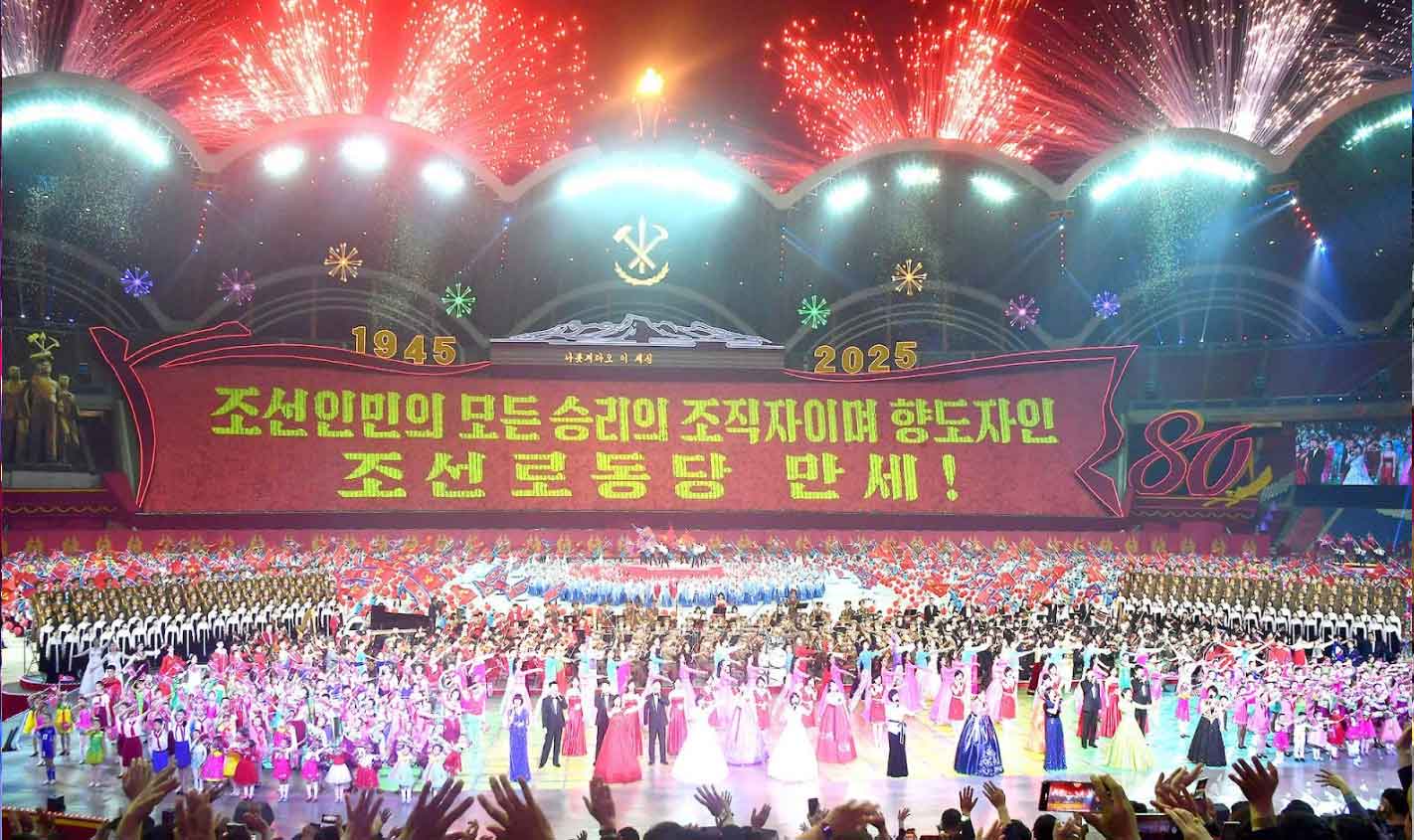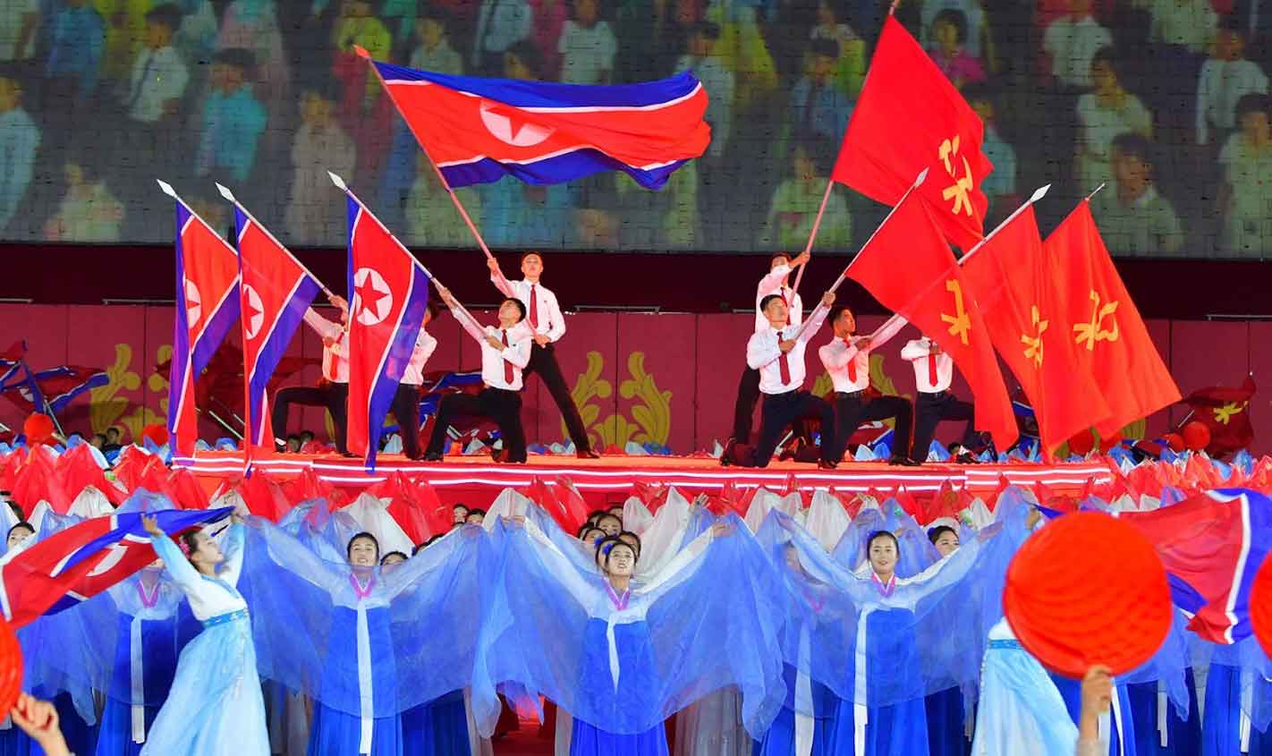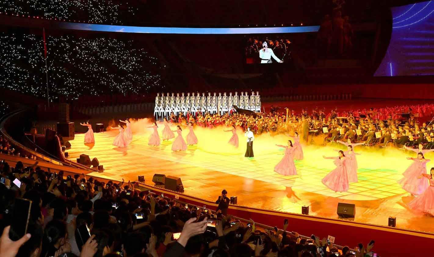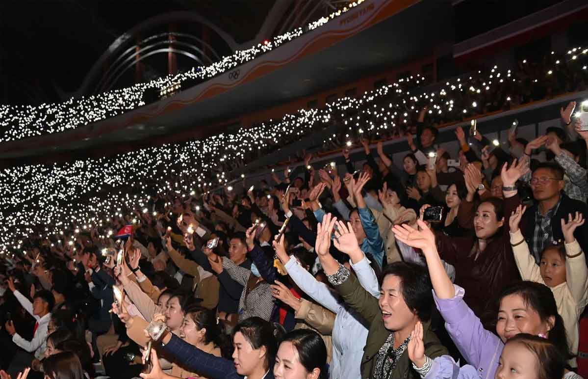 Spectators admire the grand mass gymnastics and artistic performance “Long Live the Workers’ Party of Korea,” an extravaganza held at Pyongyang’s May Day Stadium to celebrate the 80th founding anniversary of the WPK. Such a massive event greatly refined in organization, unity of movements and good ensemble will probably not be seen elsewhere.