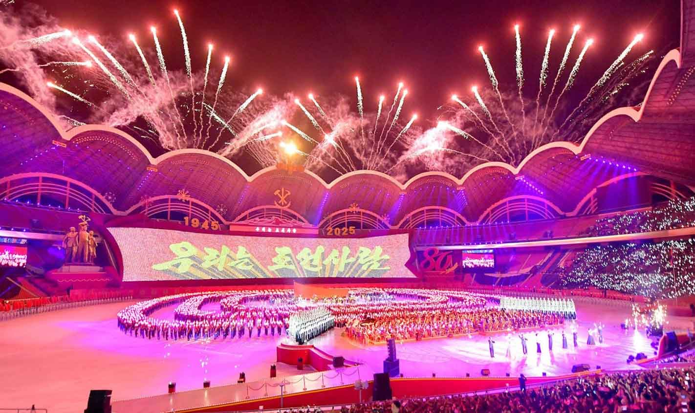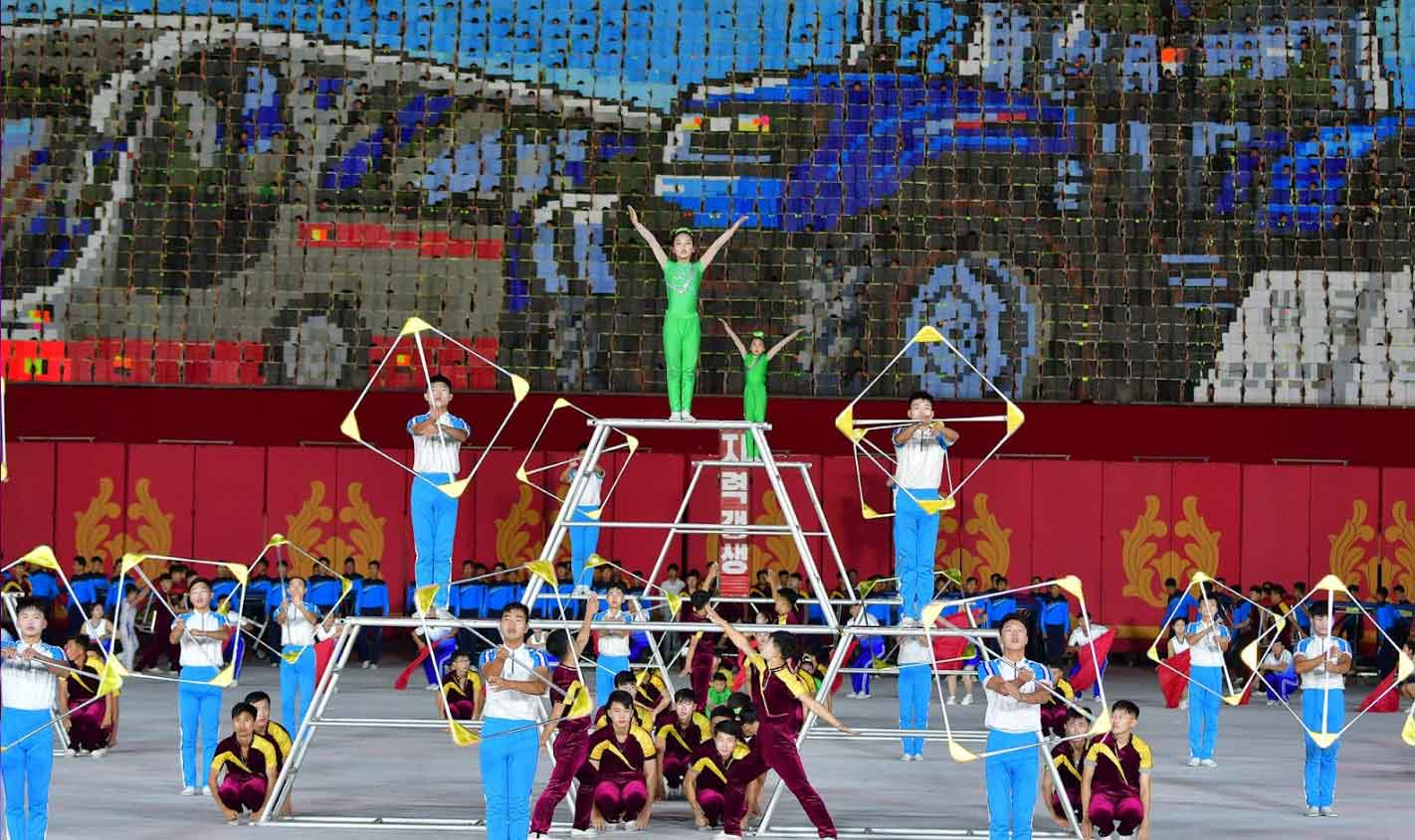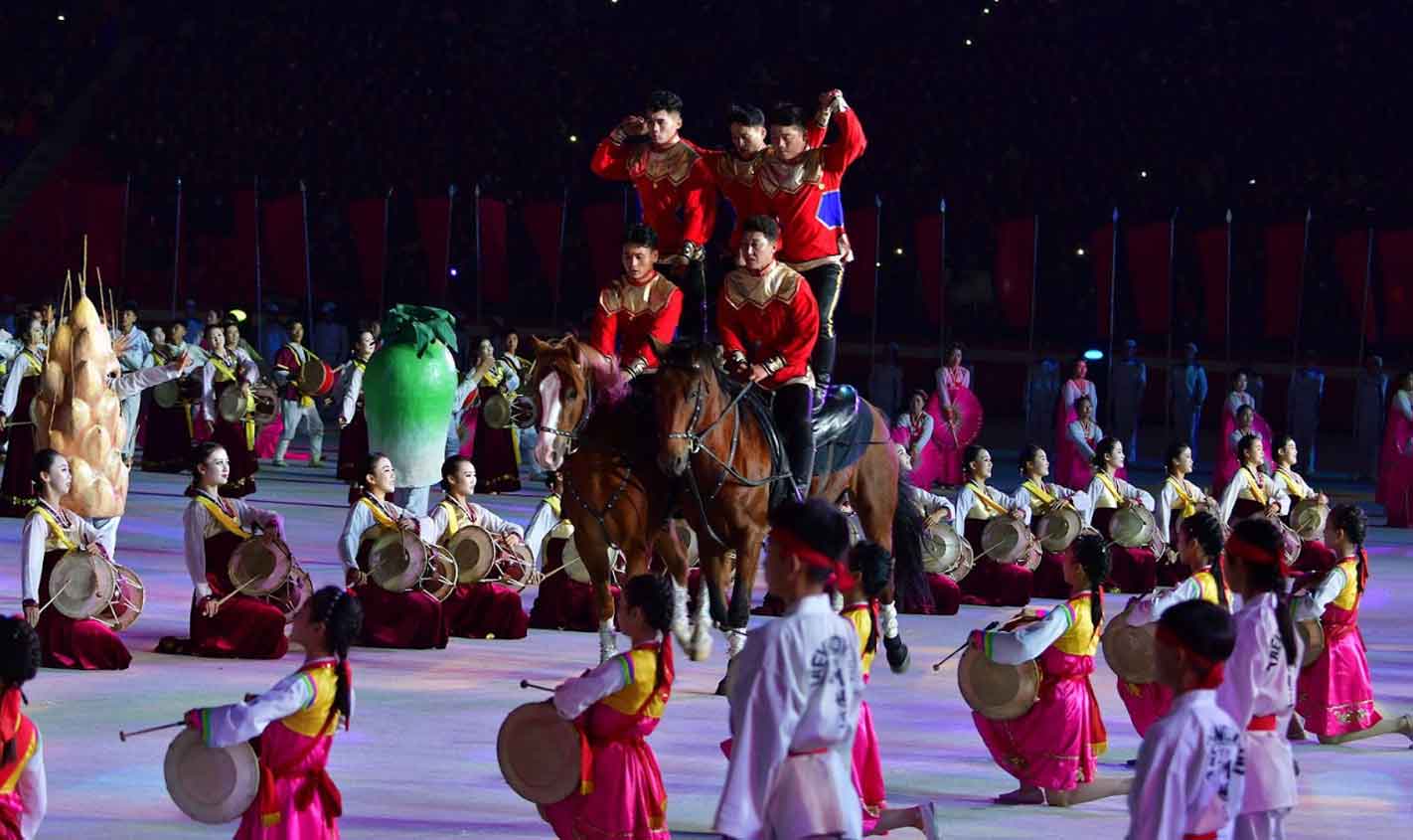 Spectators admire the grand mass gymnastics and artistic performance “Long Live the Workers’ Party of Korea,” an extravaganza held at Pyongyang’s May Day Stadium to celebrate the 80th founding anniversary of the WPK. Such a massive event greatly refined in organization, unity of movements and good ensemble will probably not be seen elsewhere.