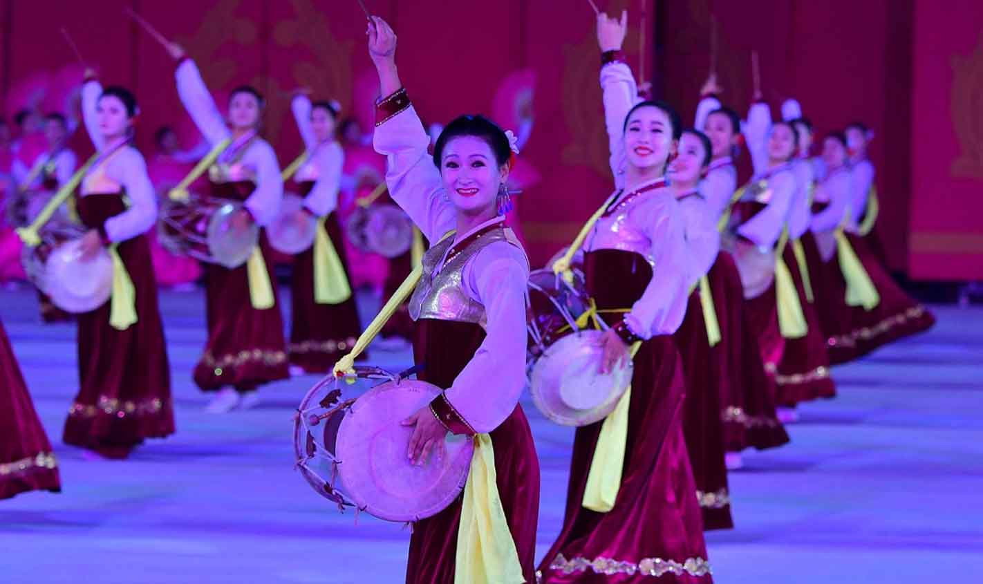 Members of the janggo group at the Mangyongdae Schoolchildren’s Palace.