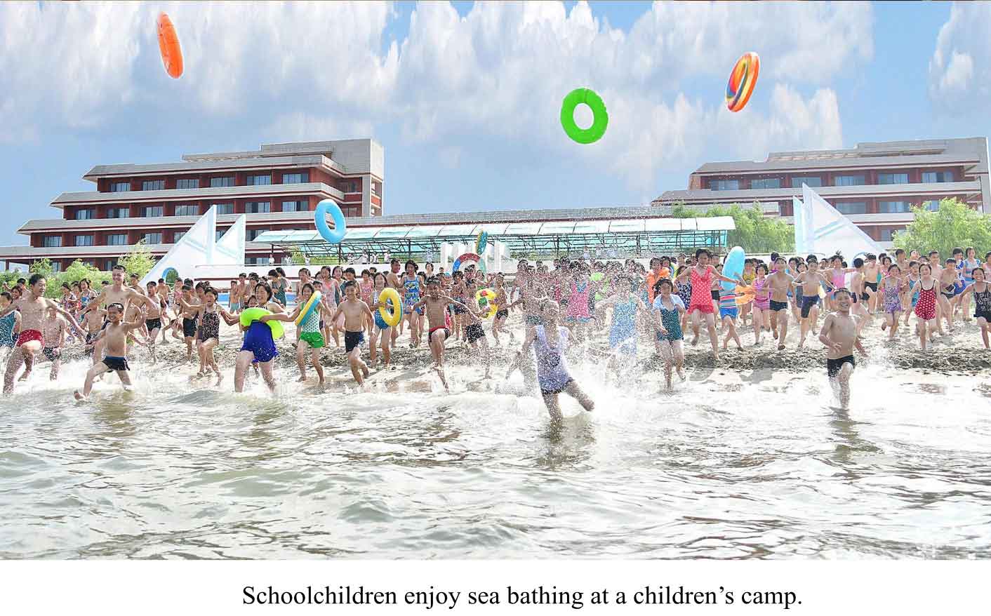 Children are having a good time at the Songdowon International Children’s Camp and other camps built in scenic spots at state expense.